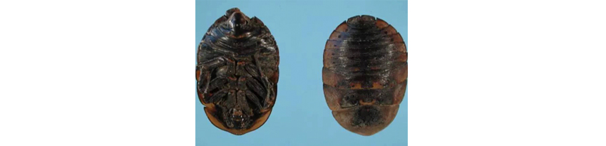 來源人民衛(wèi)生出版社《常用中藥鑒別真?zhèn)巍?br /> 呈扁平卵形,長1.3~3cm,寬1.2~2.4cm。前端較窄,后端較寬,背部紫褐色,具光澤,無翅。前胸背板較發(fā)達(dá),蓋住頭部;腹背板9節(jié),呈覆瓦狀排列。腹面紅棕色,頭部較小,有絲狀觸角1對,常脫落,胸部有足3對,具細(xì)毛和刺。腹部有橫環(huán)節(jié)。質(zhì)松脆,易碎。氣腥臭,味微咸。